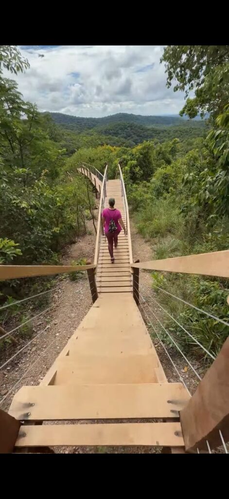 Após as orientações, iniciamos uma trilha curta, seguida pela famosa escadaria que leva até o interior da gruta.